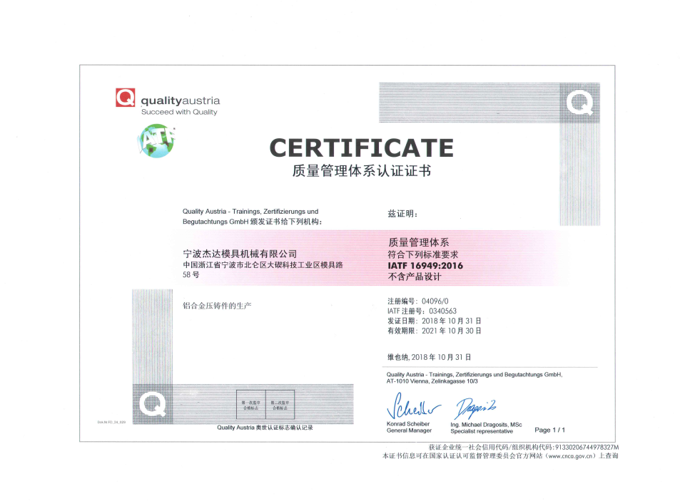 8月23日,经过为期三天严格审查,我司顺利取得IATF16949升级换版资格认证;并在10月份取得证书。